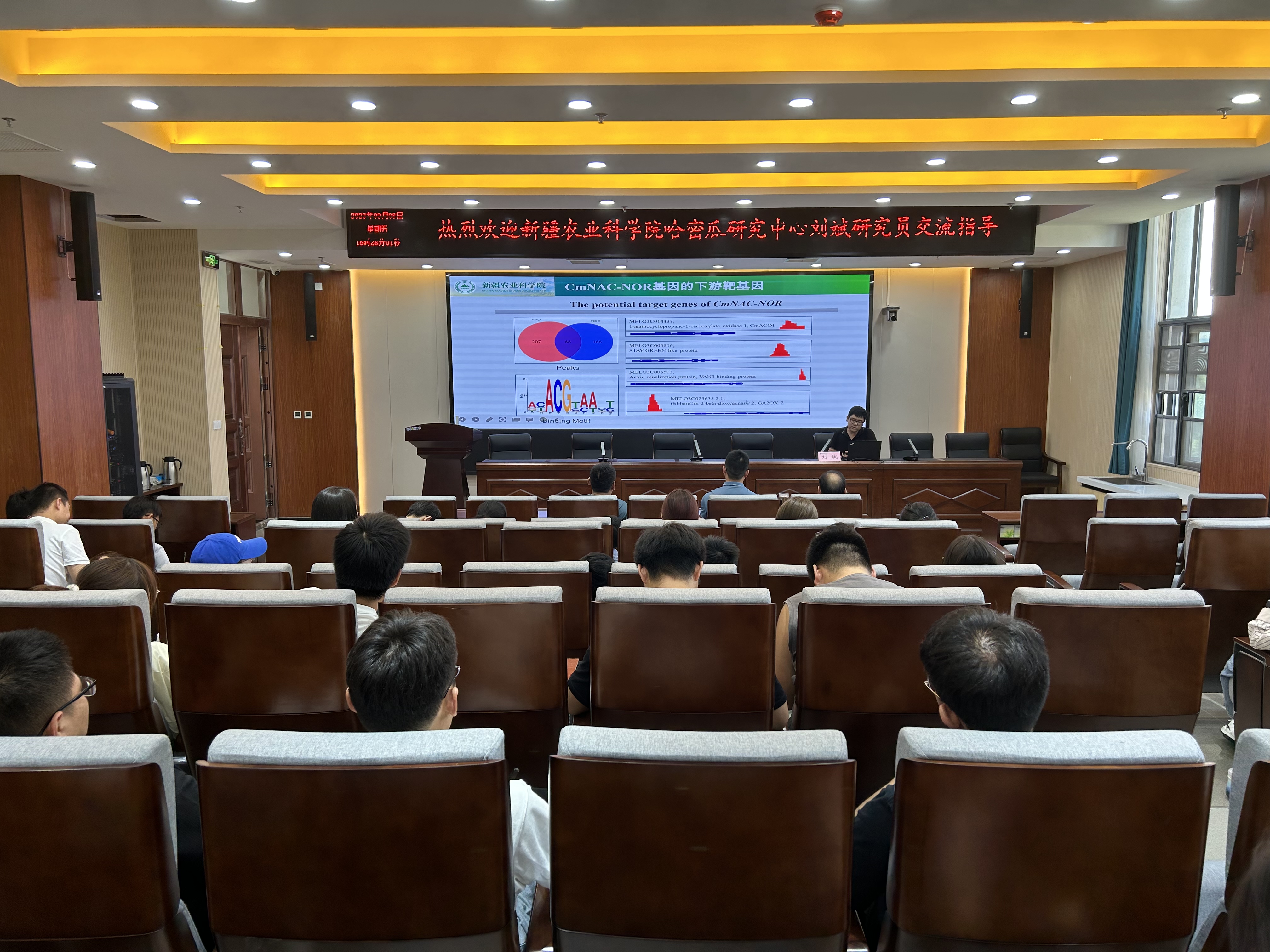 2023年9月8日下午,新疆农业科学院哈密瓜研究中心研究员刘斌应邀于龙子湖校区力行楼学术报告厅北209,为我院师生作“甜瓜NAC家族基因调控果实成熟的研究进展”的学术报告会。报告会由杨路明教授主持,园艺学院部分教师及研究生参加。