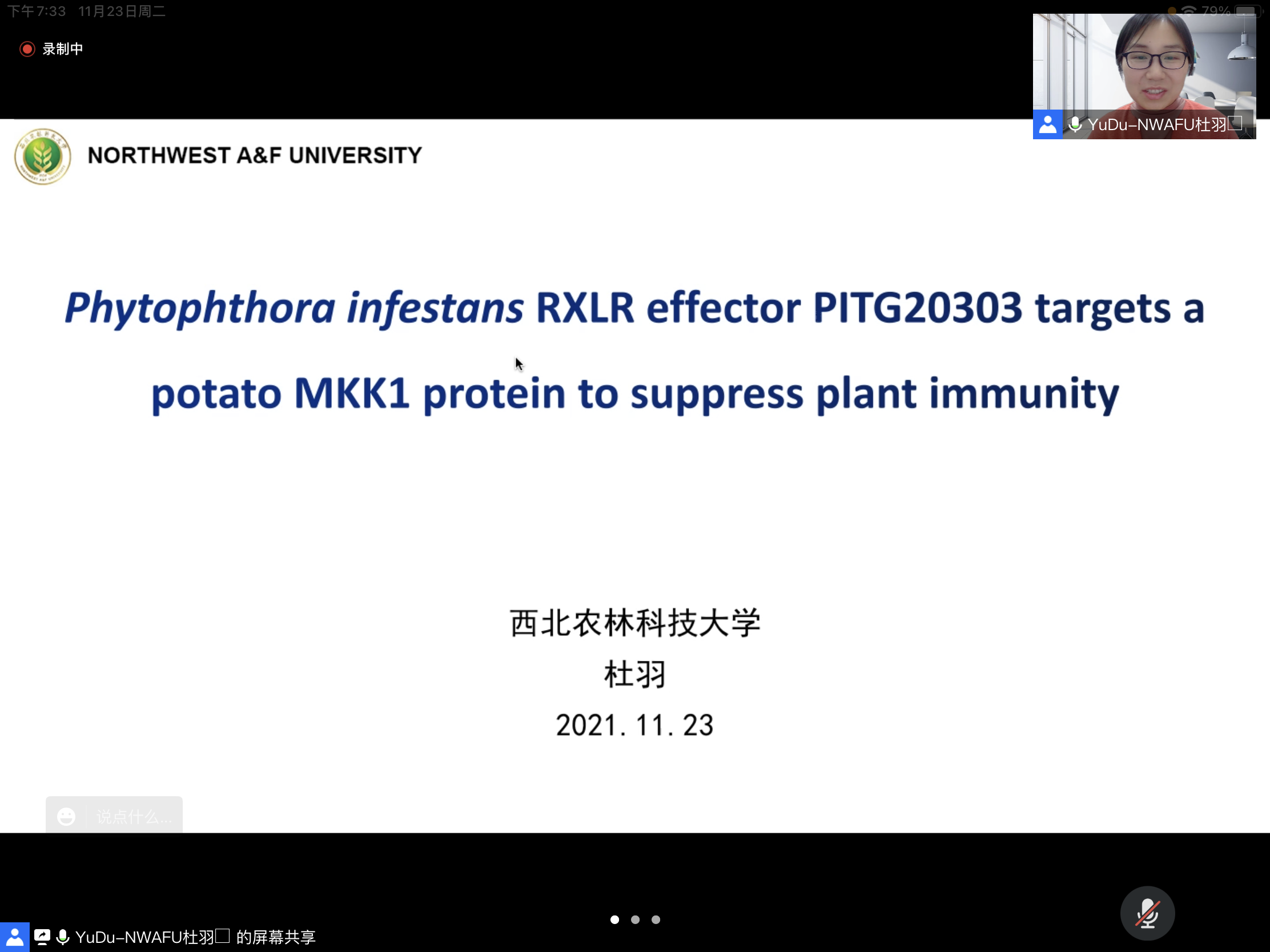 PITG20303 targets potato MKK1 protein to suppress plant immunity》为题,以探究马铃薯晚疫病广谱抗性为目标,揭示了病原相关分子模式触发的植物抗性反应与效应蛋白触发的植物抗性反应,分析了效应蛋白在改变其寄主靶蛋白功能中的作用以及在揭示植物免疫系统中的作用,发现