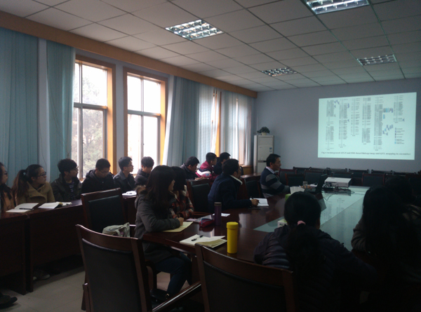 11月25日下午,我院杨路明博士在二号楼二楼会议室为园艺学院师生做学术报告,杨博士今年8月份从美国威斯康星大学麦迪逊分校园艺系学成回国,受聘我院蔬菜学特聘教授岗位。他报告的题目是“黄瓜小叶基因的图位克隆、分子进化与功能”。 园艺学院教师和研究生以及兄弟学院广大师生参加了报告会.