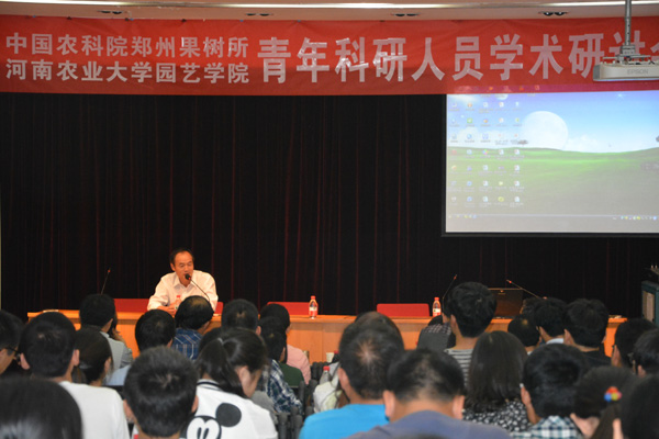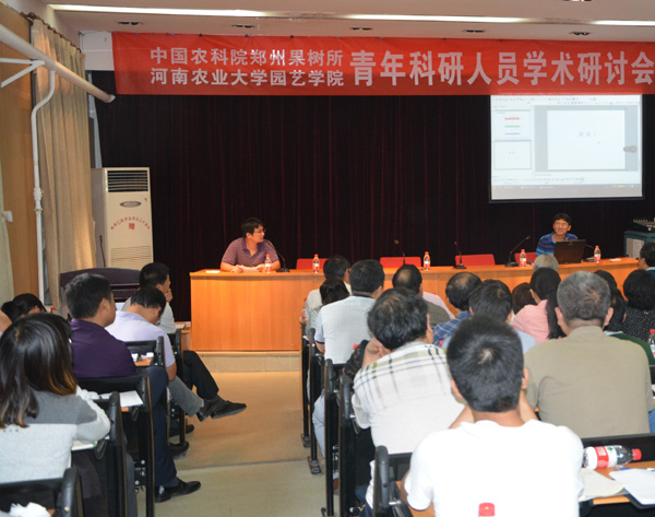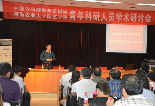 9月29日下午,园艺学院和中国农业科学院郑州果树所在2号楼会议室举行了青年科研人员学术研讨会。郑州果树所副所长方金豹,科研处副处长吴斯洋、副处长田鹏等出席了会议,园艺学院全体教师、研究生以及兄弟学院研究生参加了本次研讨会。