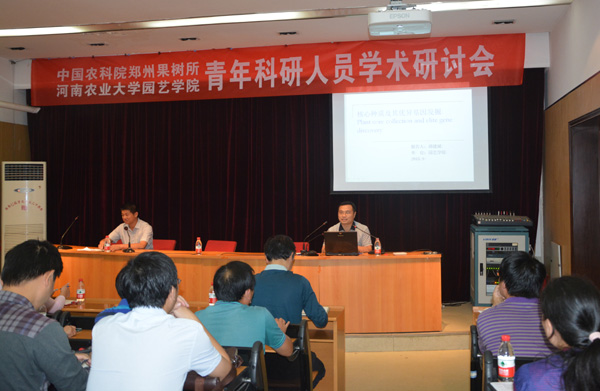 在研讨会上,由郑州果树所和园艺学院的青年科研人员代表曹可博士、张恒涛博士、曾文芳博士、胡建斌博士、叶霞博士和白团辉博士分别做了报告。曹可博士讲述了基因组研究在桃分子标记中的应用,张恒涛博士讲述了新西兰苹果的育种方法,曾文芳博士讲述了桃果实SH肉质机理的研究,胡建斌博士讲述了核心种质及其优异基因发掘,叶霞博士讲述了乙烯在葡萄中的作用,白团辉博士讲述了苹果柱状树形和耐涝型基因。报告内容广泛,涉及分子标记、育种和种质资源等多个方面。报告者科研成果卓越,讲述内容深刻前沿,并与其他科研人员展开热烈的讨论。
