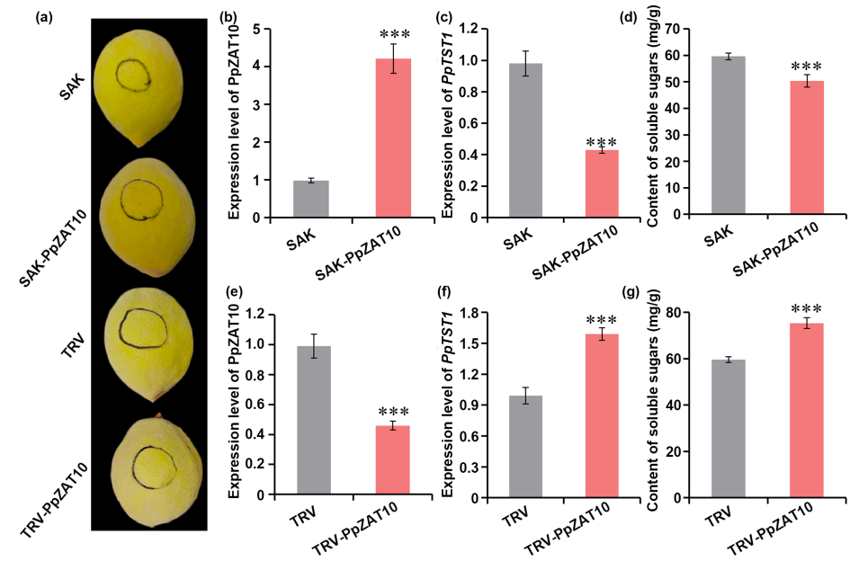该研究揭示了PpZAT10调控糖转运基因PpTST1参与桃果实中可溶性糖积累的功能,丰富和完善了对可溶性糖积累机制的了解,为桃果实中可溶性糖调控提供了基因资源,具有重要应用价值。
